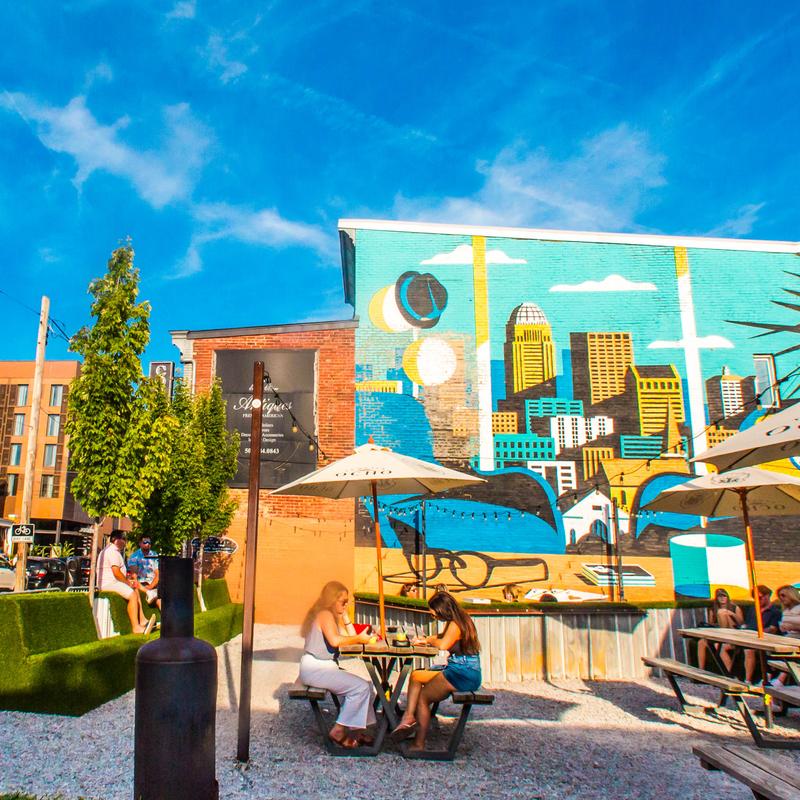 It's hard to miss the slow sounds of inevitable destruction coming from the sculpture outside of Garage Bar. The sculpture, a machine that advances two full sized automobiles slowly into one another over a period of time, simulates a head-on automobile collision. Each car moves slowly and almost imperceptibly toward the other towards an inevitable collision.